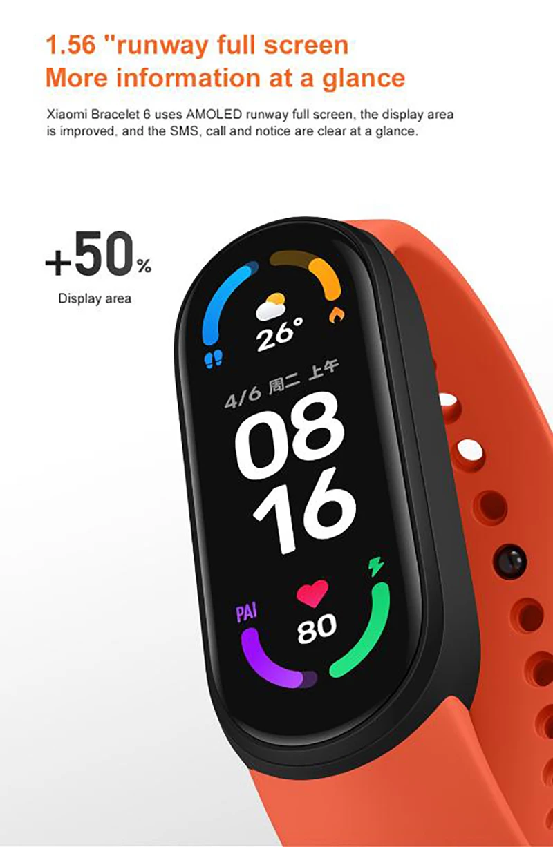 Xiaomi Mi Band 6 Smart Bracelet 1.56"AMOLED Screen miBand 6 Heart Rate Fitness Traker Bluetooth 5 ATM Waterproof Wristband
