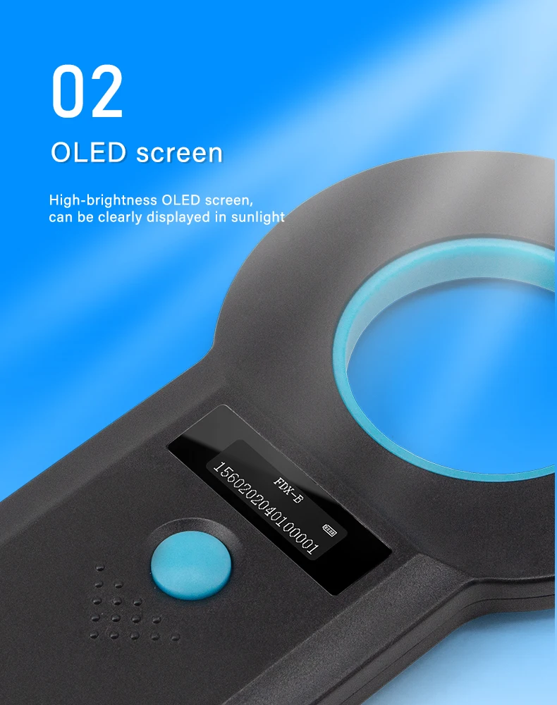 Этот ID-ридер-это микрочип-ридер, который использует технологию беспроводной идентификации и поддерживает чтение FDX-B (ISO11784 / 11785) и микрочипов EMID. В нем используется высокояркий oled-дисплей, который можно четко видеть под сильным светильник. Читатель будет оповещать при низком заряде батареи.