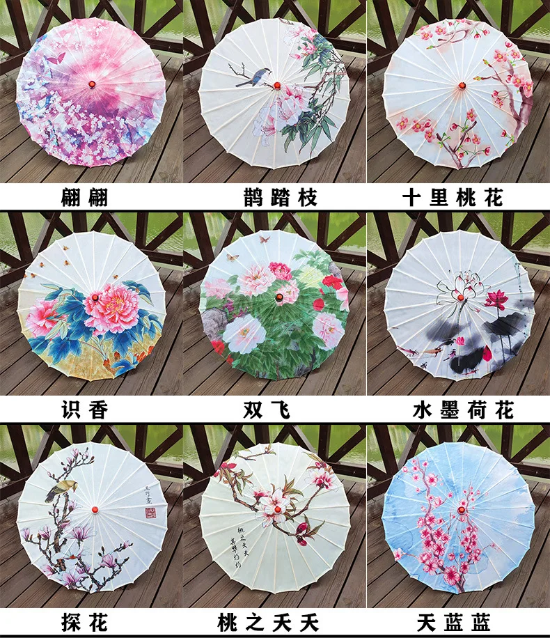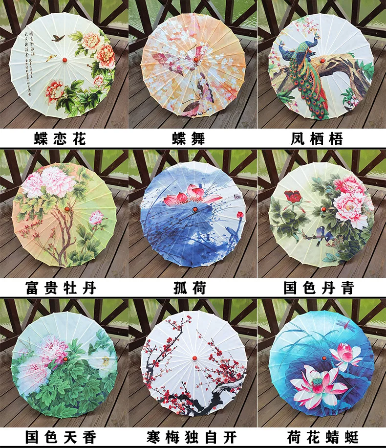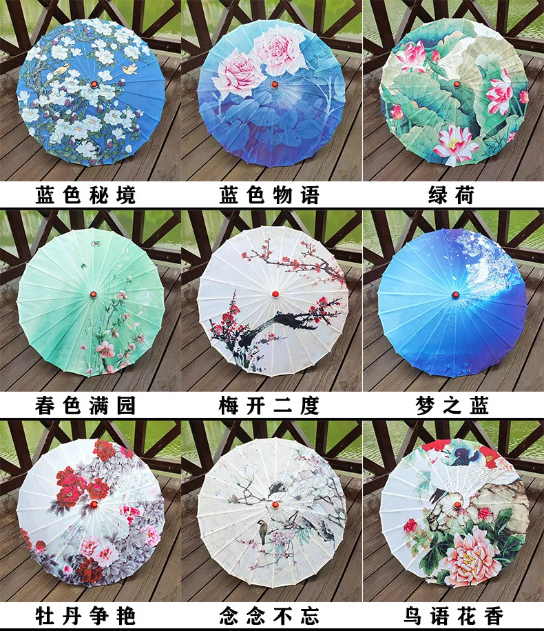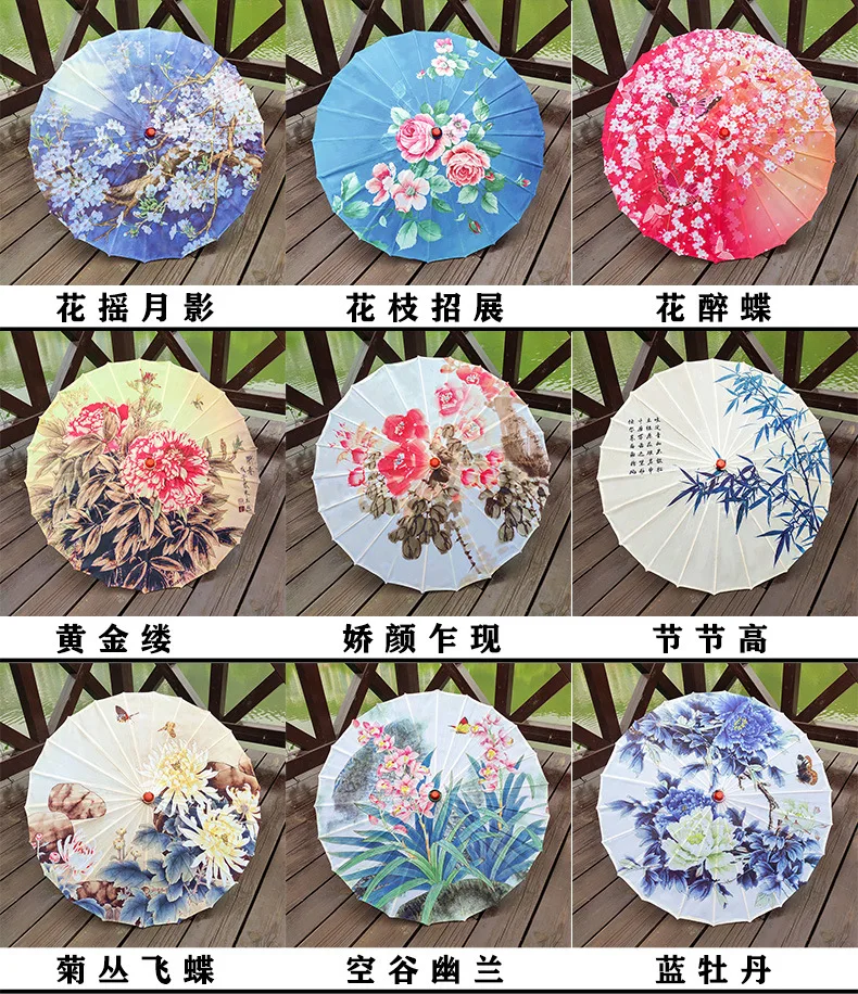 1. В Китае нематериальная культура «зонтик из масляной бумаги» в дополнение к фиксированной ручке должна быть изготовлена из дерева и бамбука, поверхность зонта обычно имеет два вида материалов, одна из них-шелковая ткань, другая-бумага из хлопка и туннельное масло. Все они называются «Зонты из масляной бумаги», потому что все они имеют стиль зонтов из масляной бумаги.