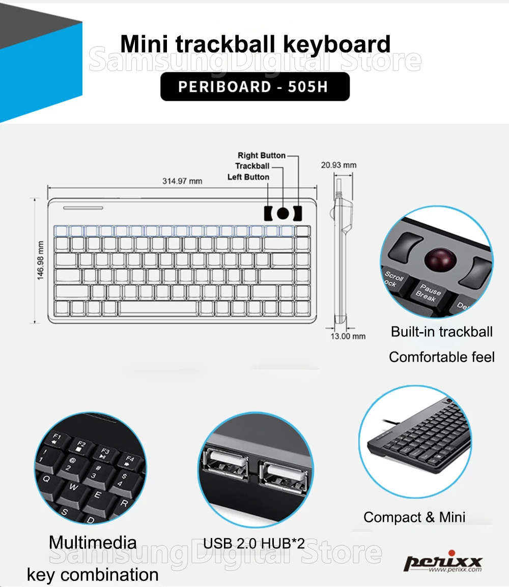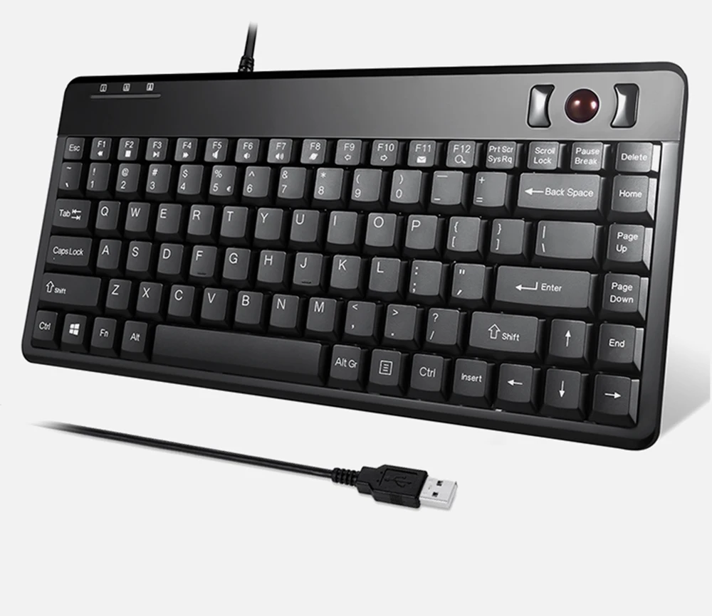 Проводная ультра-мини-клавиатура со встроенным трекболом позволяет пользователям легко управлять компьютерами и другим оборудованием без мыши.