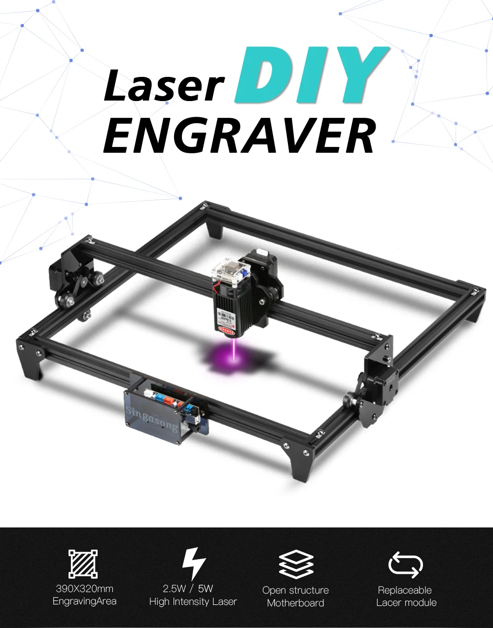 Гибкое использование: материнская плата с открытой структурой с контактами, предназначенными для самостоятельной разработки и соответствия. Сменный лазерный модуль, можно установить другие модули для получения различной мощности лазера.