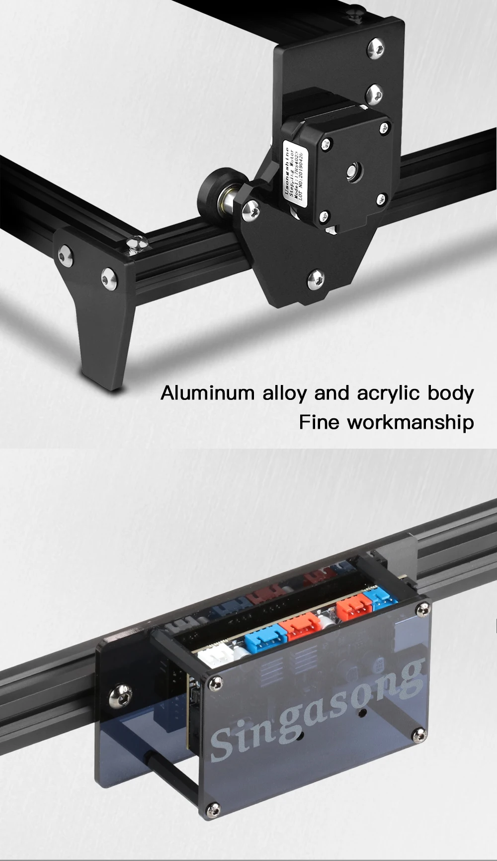 Регулируемая Лазерная головка: с использованием высококачественной лазерной головки, поддержка непрерывного программного обеспечения, регулировка интенсивности лазера, реализация многоцелевого. 0,01 мм высокая точность гравировки, может легко напечатать все изображения.