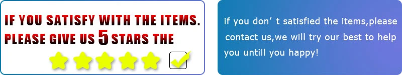 1. Если вы удовлетворены нашими продуктами и услугами, пожалуйста, уделите минуту, чтобы дать нам 5-звездочный отзыв, ваша поддержка и поддержка для того, чтобы нам двигаться дальше.