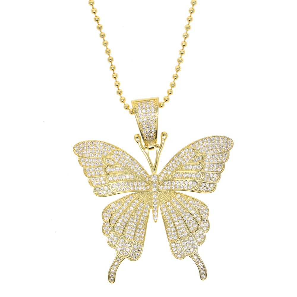Акция, высокое качество, модные украшения со льдом, Женские Ювелирные изделия, микро проложить 5А cz цирконий, цепочка из бисера, ожерелье с бабочкой