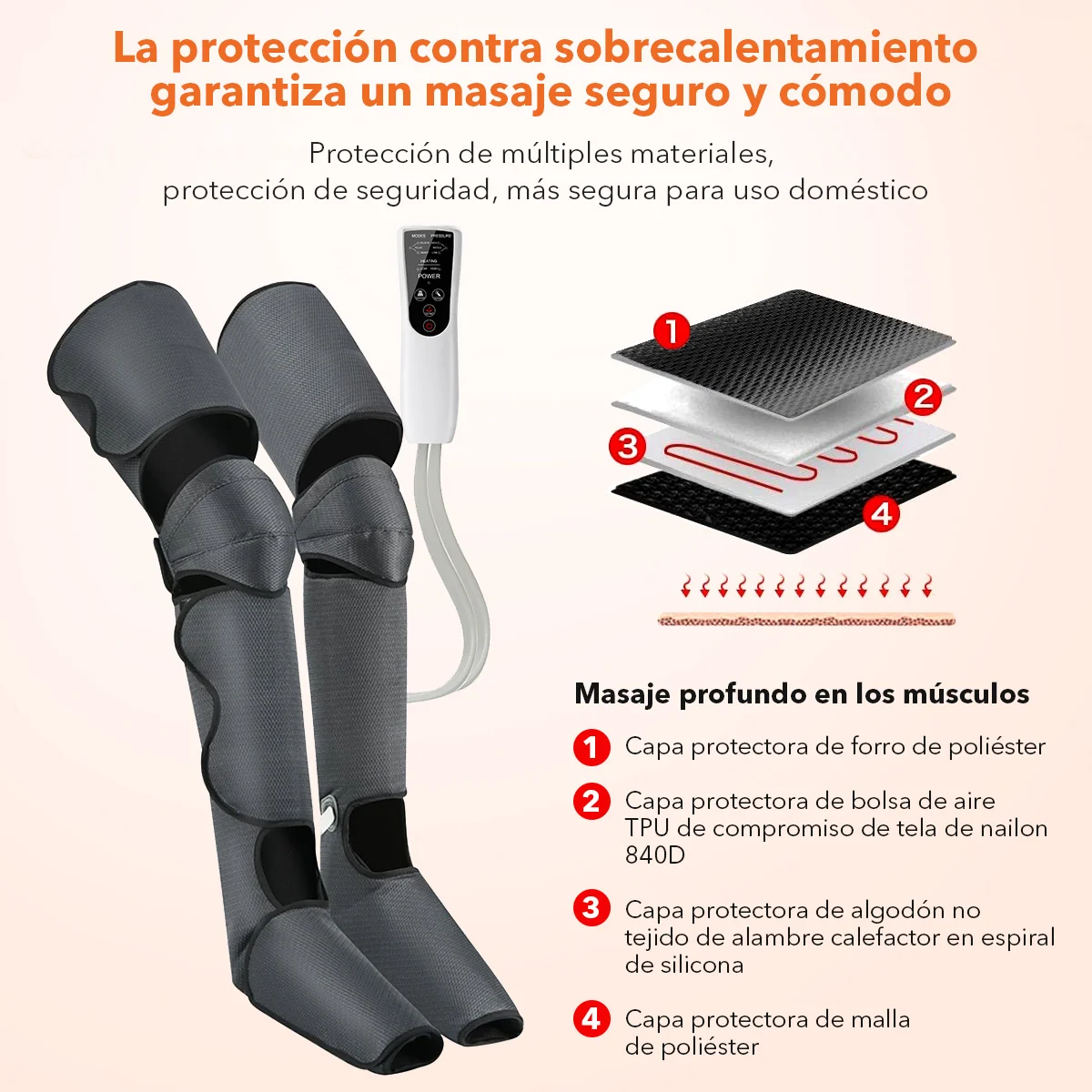 and added the heating technology at the knee part (an optional function according to your need) for a better massage experience.