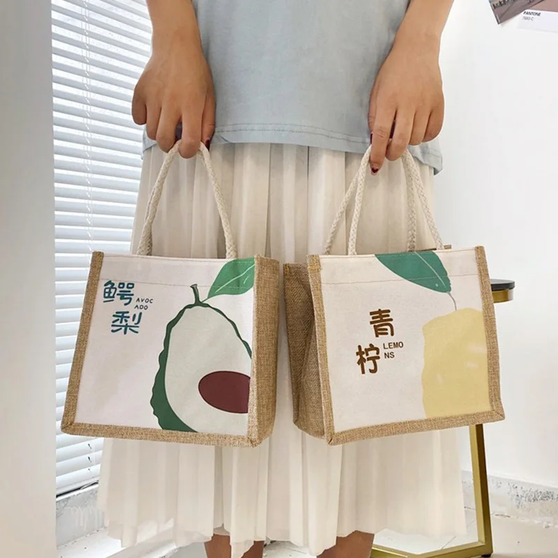 Сумка-тоут, сумка для обеда, контейнер для ужина, сумка в подарок, сумка для хранения, сумка из льна, маленькая, с принтом животных, милая, повседневная