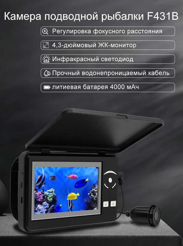 ОписаниеКамера для подводной рыбалки Erchang F431B 4,3 дюйма, 15 м, инфракрасная светодиодная для зимней камера рыбака