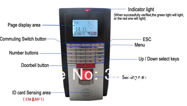 1 × сканер отпечатков пальцев + идентификационная карта Посещаемость Время Часы устройство контроля доступа