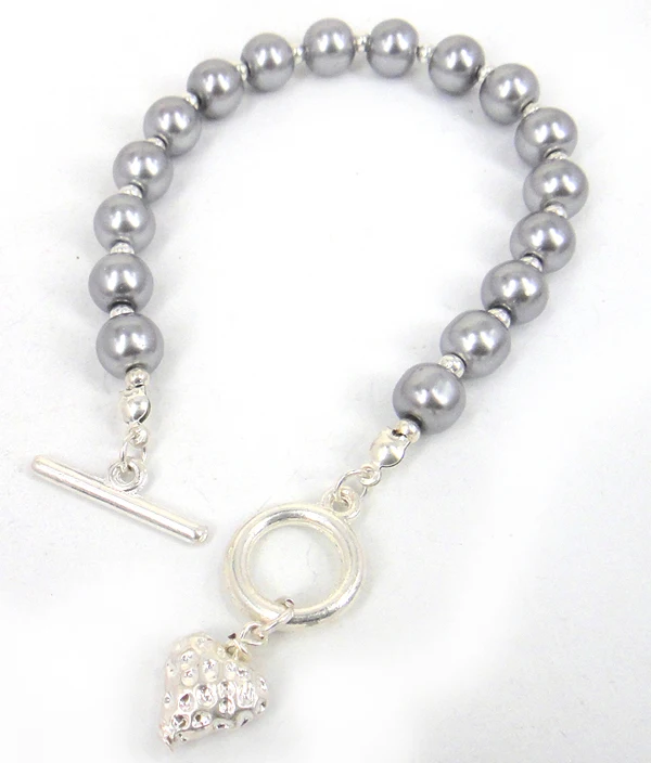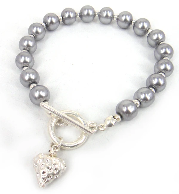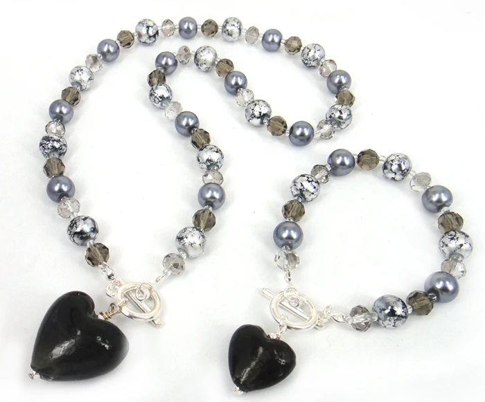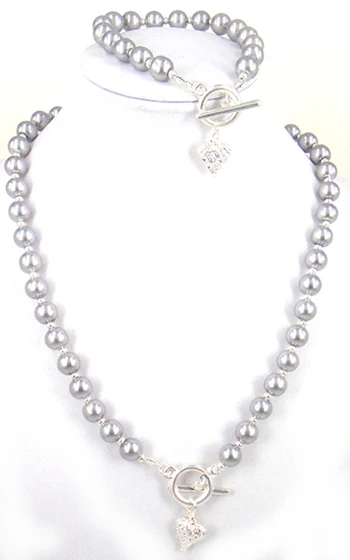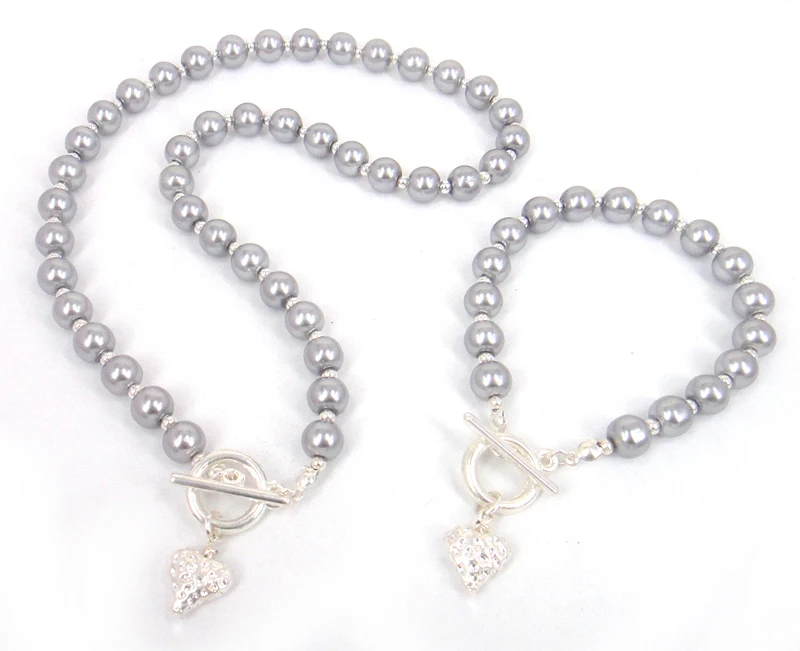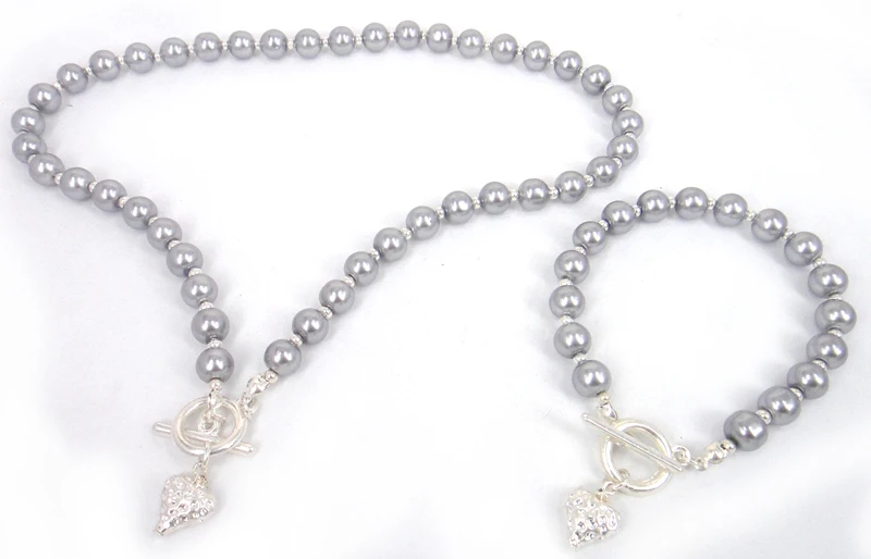 Бесплатная доставка, Модный комплект из ожерелья и браслета с милым сердцем, серебряным и серым перепелиным яйцом для женщин, ювелирные изделияUS $8,98/Набор |