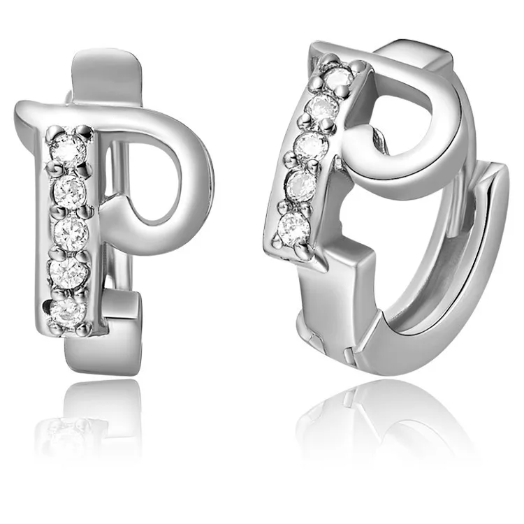 15% скидка персонализированные надписи серьги серебряные серьги для женщин серьги кубического циркония бижутерия A B C D E F G H I J K L M N O P