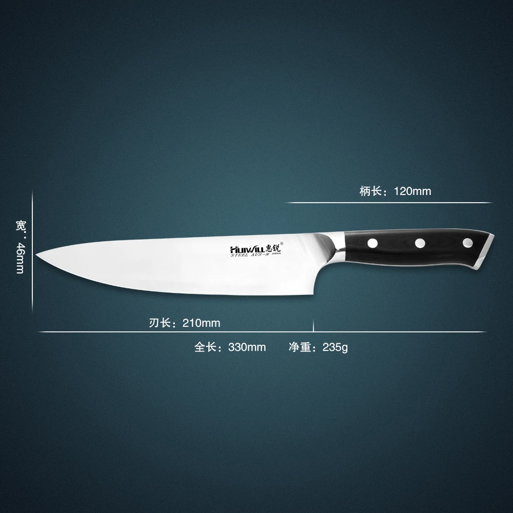Супер качество 8 "Нержавеющая сталь AUS-8 кухонный японский нож шеф-повара с черной ручкой G10 характеристики