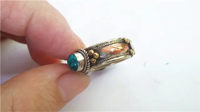 Роза Медь инкрустированные три Имитация бирюзы бусины кольца