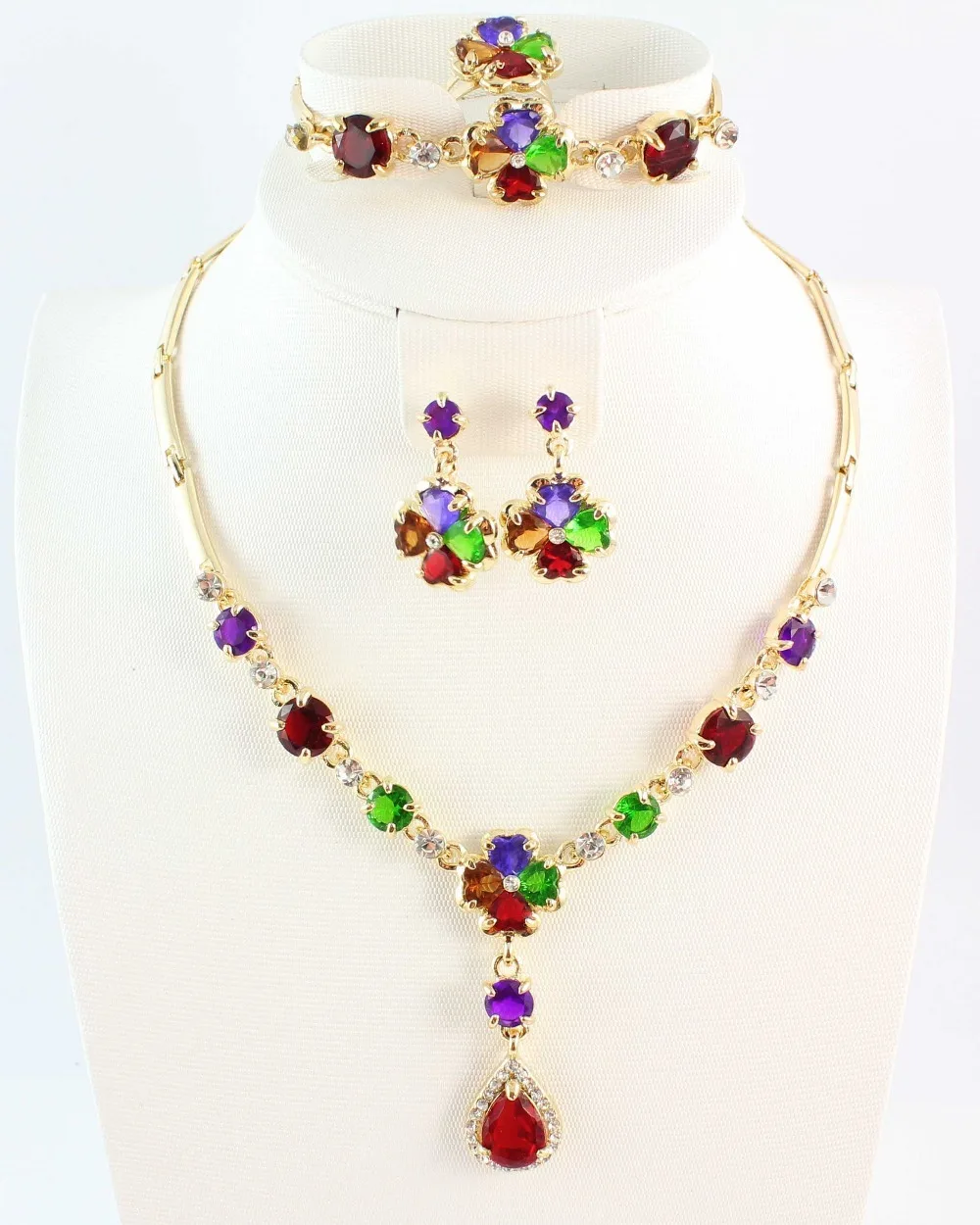 Бесплатная доставка горячие африканские Ювелирные наборы 18K позолоченные австрийские красочные хрустальные африканские костюмы набор украшений для женщинUS $27,99/Набор |