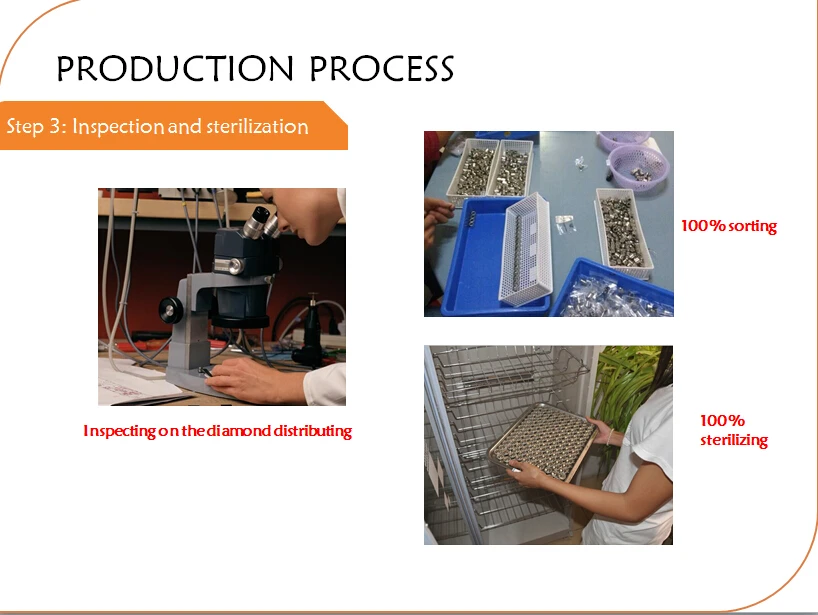 Чем больше диаметр, тем тоньше зернистость. Очистите алмазные наконечники спиртом, затем стерилизуйте их УФ-светильник или при высокой температуре. Замените хлопковый фильтр внутри алмазного наконечника или Газового соска после 5 ~ 6 клиентов