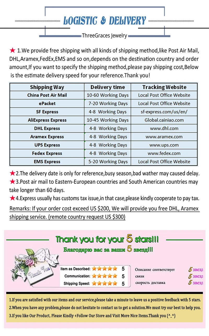 ◆Brand: ThreeGraces ◆Style: Romantic Flower Bracelet ◆Metal Material: Copper(Lead and Nickel free) ◆Main Stone Material: Cubic Zirconia ◆Main Stone Color: White,Red,Green,Black, Purple, Pink, Multi Co ★Earring Size: 18cm (Remarks: Due to the manual measurement, there may be a slight error) ◆Fit for: Young and Maturity female both ◆Gift for: Bride /Bridesmaid /Mom /Girlfriend /Wife /Daughter /Female Friends /Yourself ◆Wearing Occasion: Shopping /Wedding /Party /Prom /Anniversary / Christmas /New Year /Valentines day ★This Item Including -- 1 Pcs Bracelet ★Environmental Standard: Hypoallergenic, Lead, Nickel free ★Note: 100% of each image is taken by real products ☛Drop Shipping Customer (We can send the parcel without any our tags,please leave the message when you place the order.We also provide some discount for you) ☛Wholesale Customer (Total order amount>$200,you will be our Wholesale Customer,we will send to you by express shipping,like DHL and ARAMEX for free shipping)