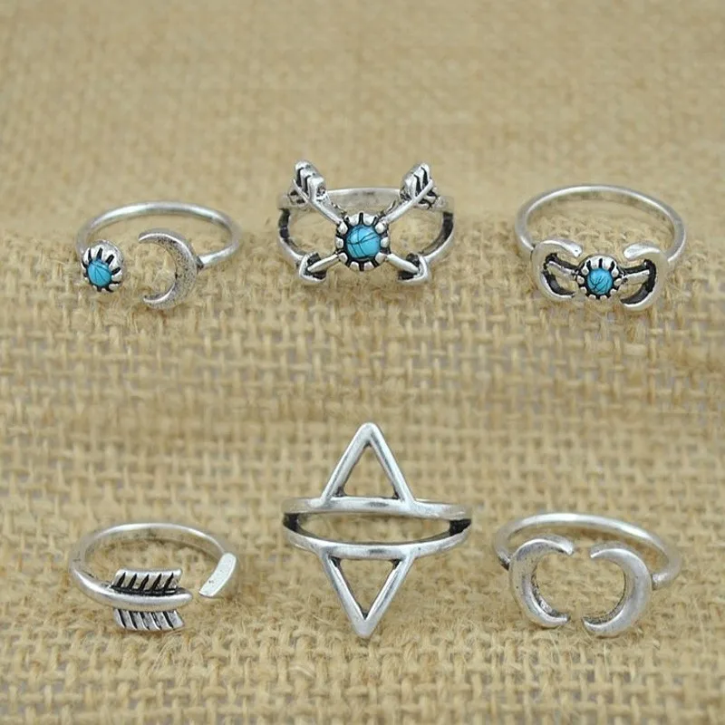 6 шт. новый стиль кольца набор панк луна стрелы кольцо античное серебро Bohomia Midi для