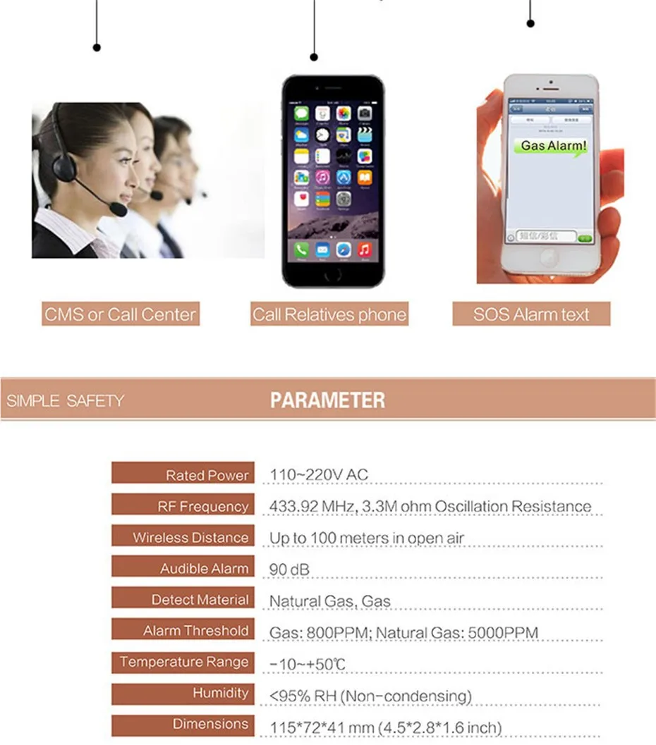 Беспроводной детектор утечки газа является входным устройством, предназначенным для обнаружения природного газа, сжиженного газа. Он может использовать самостоятельно или в качестве переднего