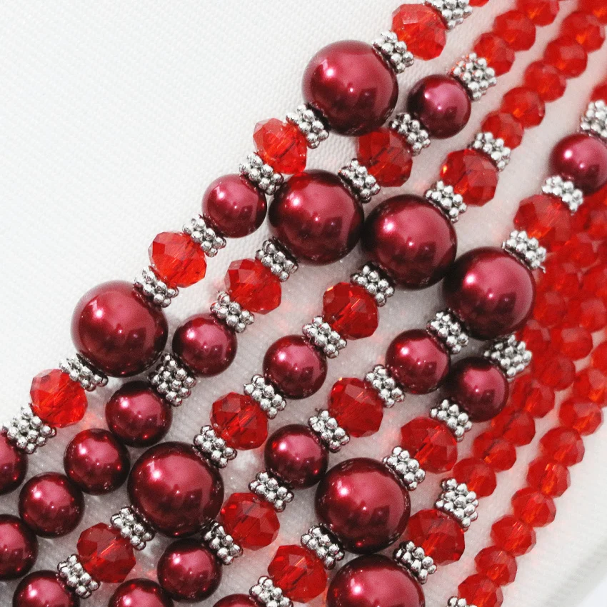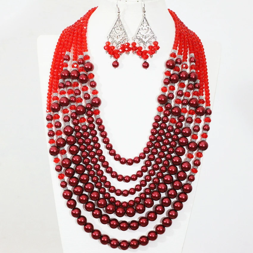 Новый дизайн высокое качество массивное ожерелье серьги 7 рядов Красная оболочка
