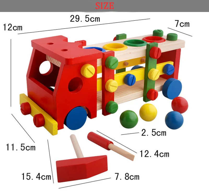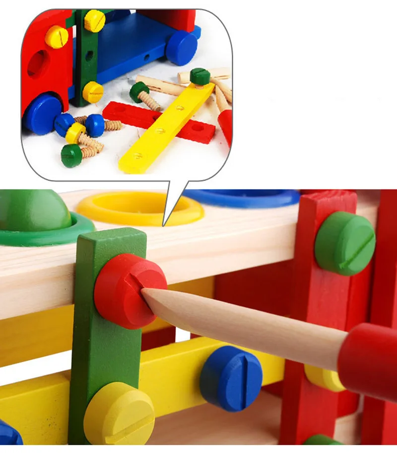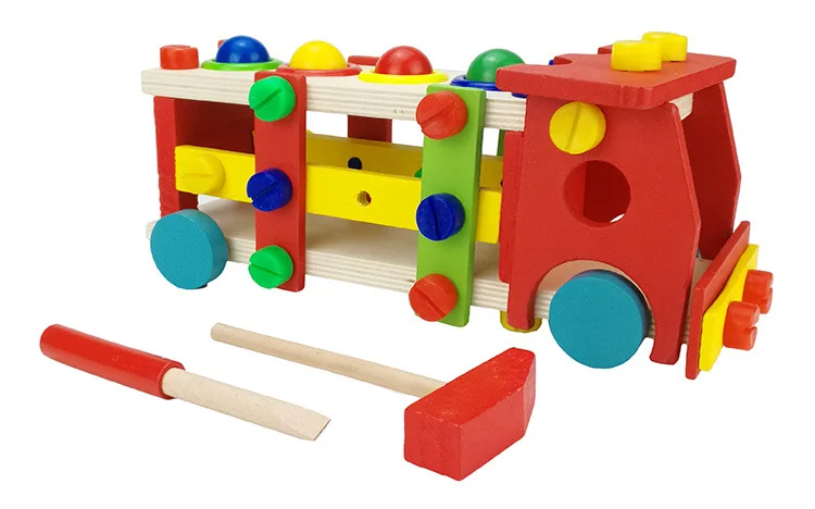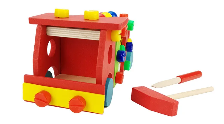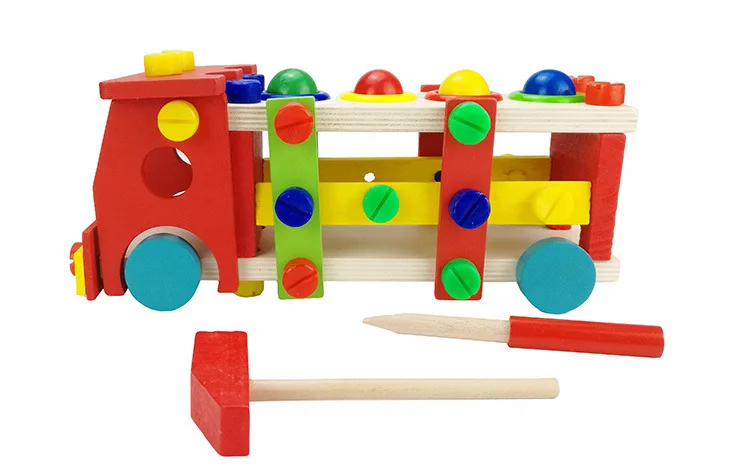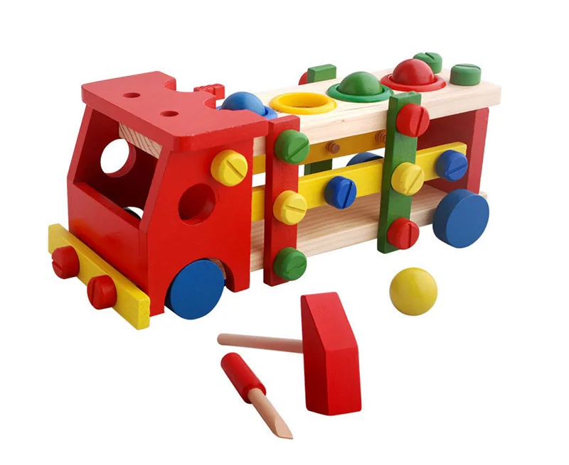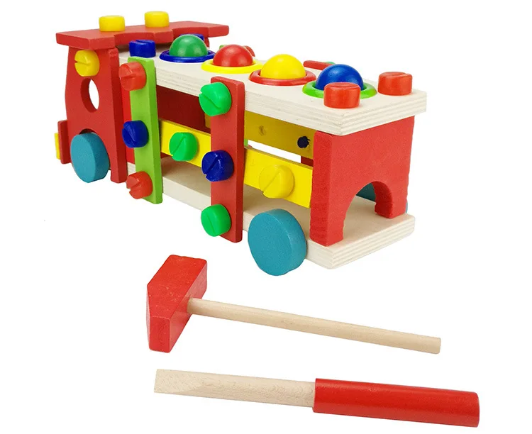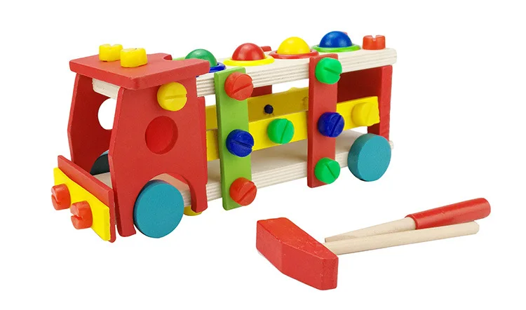 New Wooden Educational Knock The Ball Disassembly/Assembly Screw Vehicle Baby Kids Gift Block Car Toys For Children Juguetes