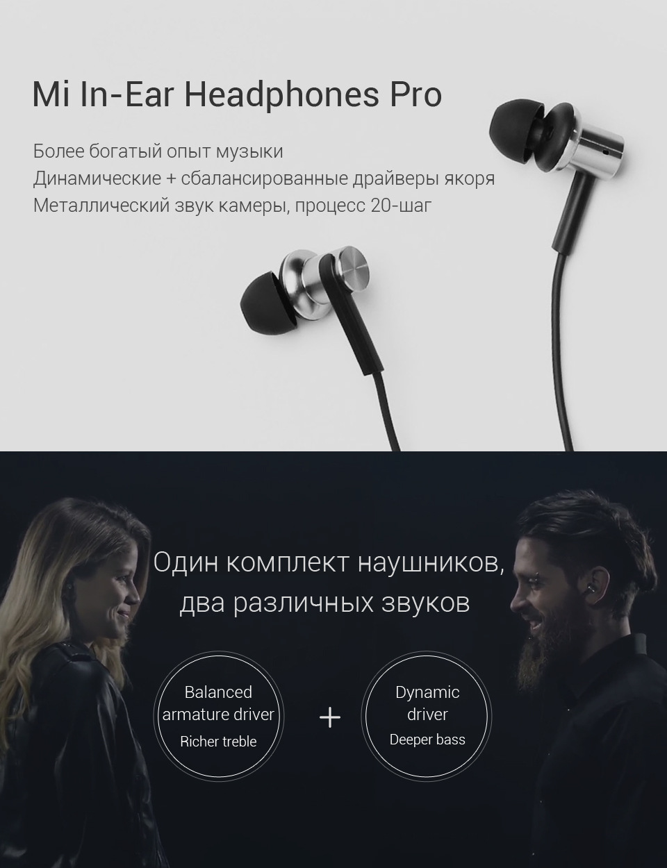 богатый опыт музыки динамический + сбалансированный драйверов арматуры металлический звук камеры, 20-шаг процессаMi In-Ear Headphones Pro HD | Xiaomi Hybrid Pro Earphone