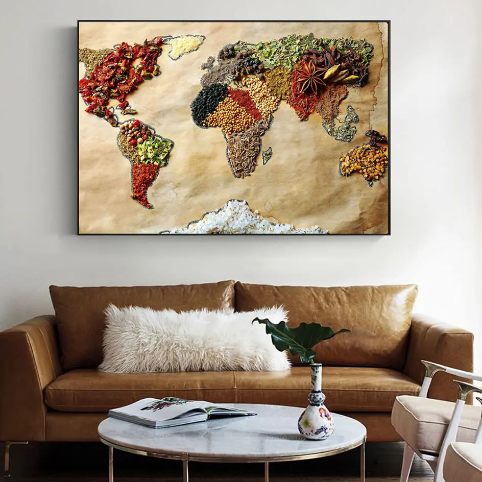 Персонализированные холст печать растягивается холст искусство Декор для гостиной карта мира 20x60 см 30x90 см стены искусства в рамке F/930 |