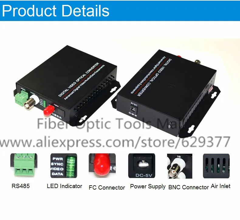 1 пара 2 шт./лот 1 канал Волоконно-оптический видео конвертер передатчик и приемник 1CH + RS485 данных