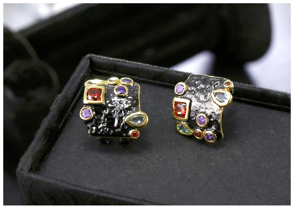 Женские серьги-пусеты DreamCarnival, Винтажные серьги-пусеты с цирконием черного и золотого цвета, 2019