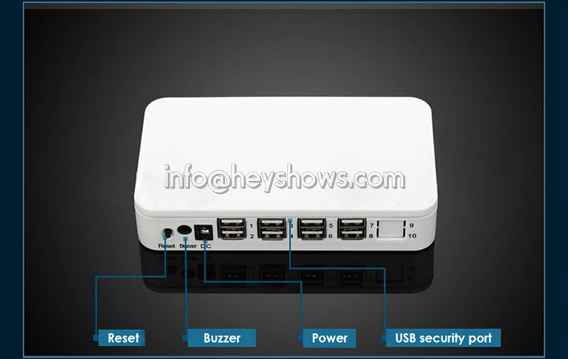 Упаковочный лист | 6 портов ноутбука охранной сигнализации дисплей системы для портативного компьютера Анти-кражи охранной сигнализации для розничного магазина с Дистанционный пульт 1. 1x6 портов хост охранной сигнализации 2. 6x USB кабели 3. 1 беспроводной пульт дистанционного управления 4. 1 комплект питания хоста |