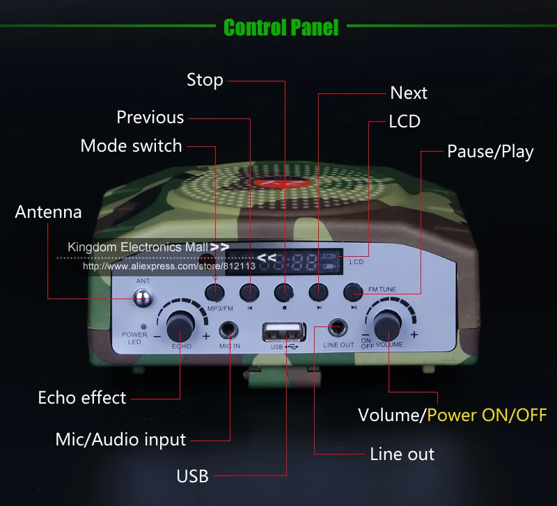 1. Выбор треков: пользователи могут выбрать определенный трек непосредственно, выбирая звуковые номера и играя. 2. Пульт дистанционного управления: может достигать до 400-500 м диаметров видимого расстояния. (Не менее 400 м диаметры) 3. Поддержка USB, TF, Micro SD карты; Встроенный литий-ионный аккумулятор 2200 мАч; Размер: 125*45*85 мм.