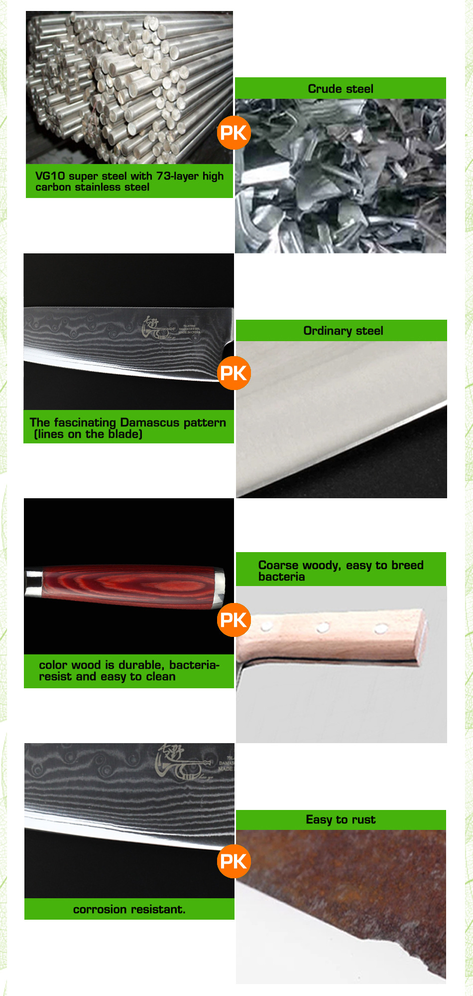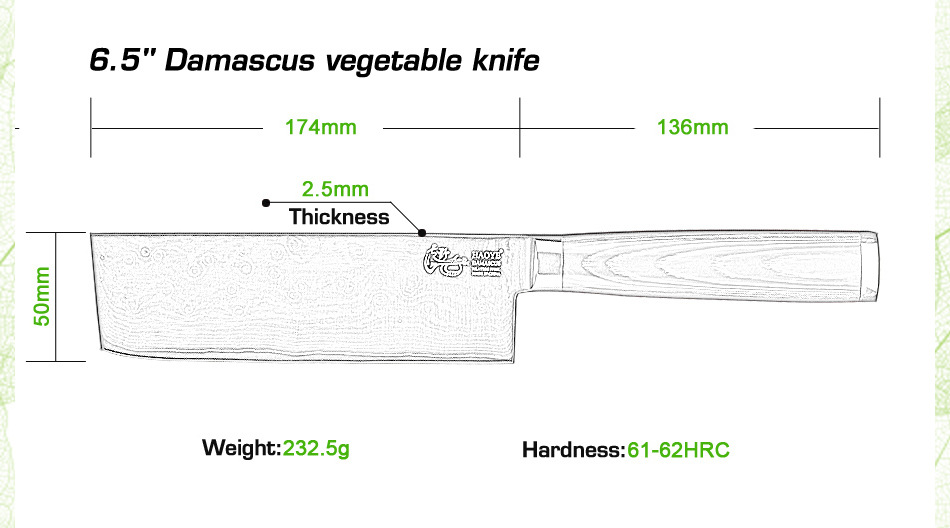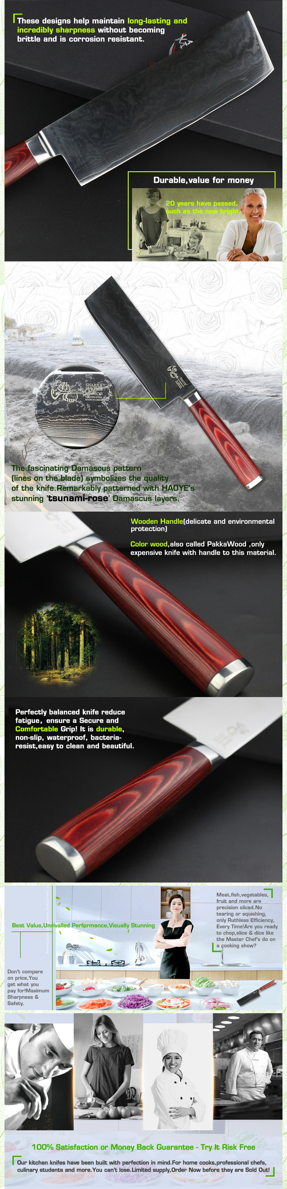 продукт(6.5 " дюймов Дамаск нож для овощей.) увлекательный Дамаск шаблон (линии на лезвии 'tsunami-rose') произвести впечатление на своих гостей с вашимвизуально ошеломляющий. символизирует качество ножа. высококачественных Материалов(дамаск VG10 и 73-layer микро карбида стали) extremeрезкостьи долгодолговечностью. ремесленное производство(специальная термообработка через точный контроль температуры) имеет беспрецедентную твердость62 Rockwell (HRC) . не становятся ломкими и устойчив к коррозии. деревянной Ручкой(нежный и охрана окружающей среды) обеспечить безопасную иудобнаясцепление! прочный иnon-slip. подарочная Коробка(черный гофрированные картонные коробки). элегантный внешний вид, Влагостойкий и ударопрочный.