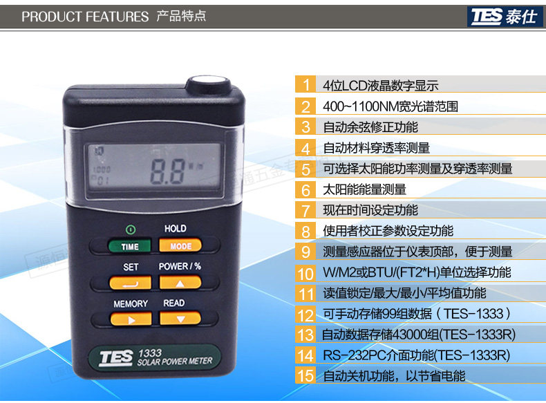 Диапазон измерений | 2000 Вт/м2, 634Btu/(ft2 * h) | |