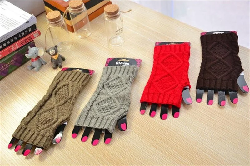 5 шт./лот, Осень-зима, короткие теплые вязаные перчатки для пары, милые вязаные перчатки, оптовая продажа