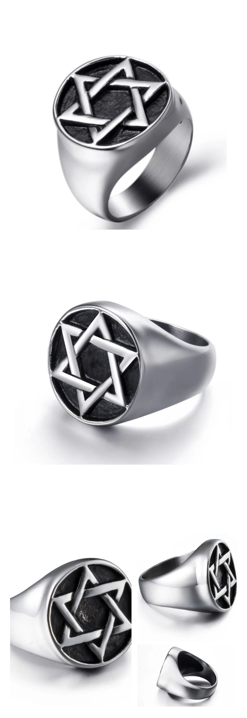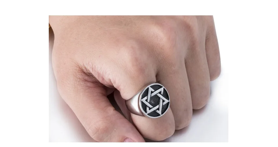 Мужская Волшебная гексаграмма для мальчика Звезда Давида серебряный черный кольцо из нержавеющей стали 316L подарки Ювелирные изделия размер США 8-13