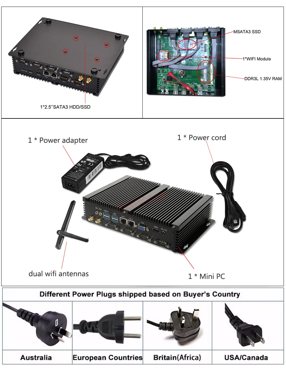 Если вы не являетесь экспертом или не знакомы с установкой ПК, пожалуйста, купите комплект с ram по крайней мере. Если купить комплект без оперативной памяти,Используйте DDR3 без ECC SO-DIMM Ram.Бесплатная Операционная система: по умолчанию установлена наша OEM версия (не Подлинная) Win8 или Win10 на английском языке бесплатно, другие языки могут быть выбраны среди: русский, испанский, португальский, французский, немецкий, арабский, итальянский, японский, турецкий, греческий и т. Д. Пожалуйста, сообщите нам, какой язык вы хотите установить. Другие системы, такие как Linux,XBMC(Kodi), Ubuntu, Openelec и т. Д. Если вам нужно, все могут поддерживать и нужно устанавливать самостоятельно