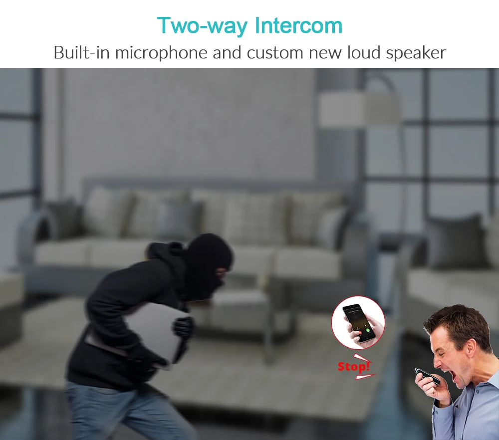 Встроенный микрофон и голосовой динамик, вы можете удаленно говорить на месте в то же время, проверить ситуацию и кричать удаленно.