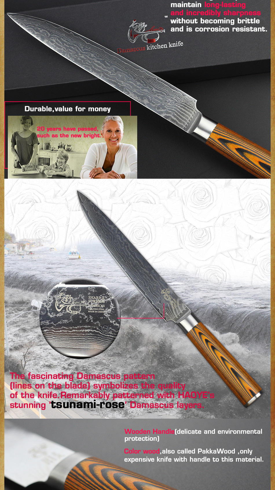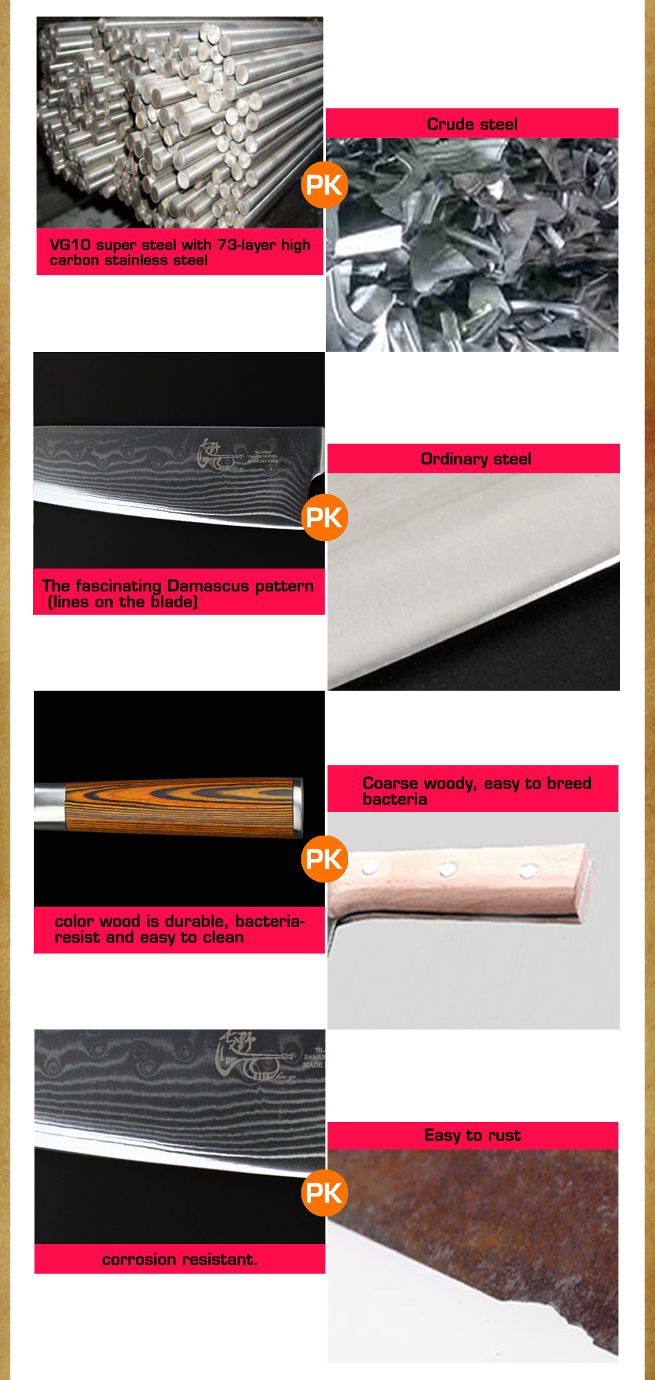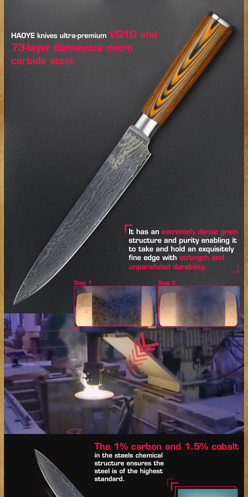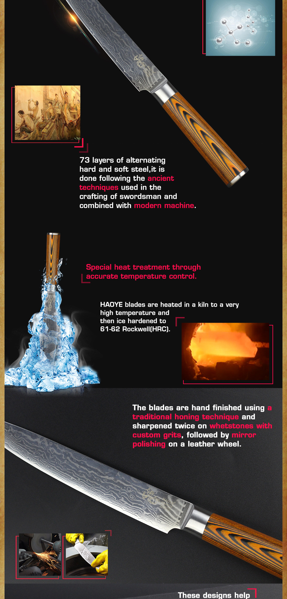 Промыслы:73 слоя чередующейся твердой и мягкой стали, HAOYE лезвия нагреваются