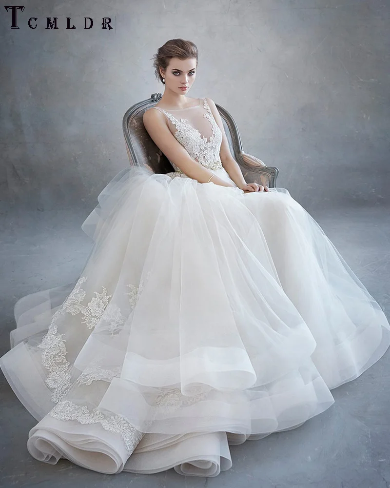 Tcmldr Свадебное Платье Великолепная Аппликации Свадебное платье Съемный Суд Поезд 2016 Дизайнер Новый Дизайн Плюс Размер Vestido Де Noiva