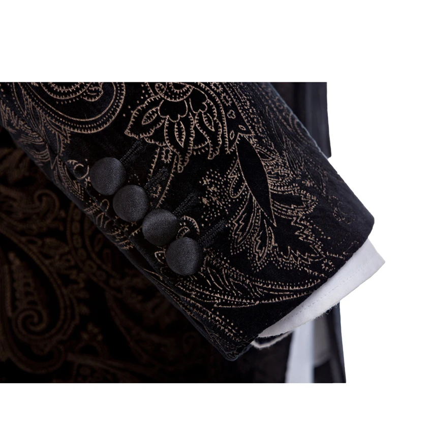 2020 High Quality Black Peaked Lapel Man Suits Pattern Groom Tuxedos Velvet Suit Tailored Wedding (Jacket+ pants) | Мужская одежда