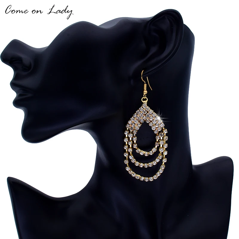 Оптовая продажа красочные стразы капли воды Богемия большой длинный кулон Висячие серьги Свадебные ювелирные изделия для женщин Er265