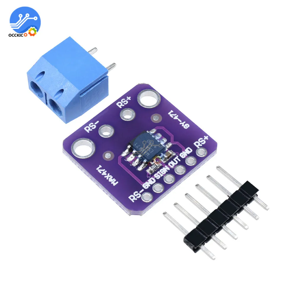 Description: Size: 19.5 * 20.3mm This module can be used to test the current and voltage. The principle of voltage test based on principle of resistive voltage divider design, can make the red terminal connector input voltage to 5 times smaller. Analog input voltages up to 5 v, the voltage detection module input voltage not greater than 5Vx5 = 25V (if using 3.3V systems, input voltage not greater than 3.3Vx5 = 16.5V). AVR chips have 10-bit AD, so this module simulates a resolution of 0.00489V (5V / 1023), so the minimum voltage of input voltage detection module is 0.00489 Vx5 = 0.02445V. The MAX471 chip on the board used to test the consume current of the load. Paramenter: Test Voltage range: DC3 - 25V (Ard uino work on 5V) or DC3 - 16.5V (work on 3.3V) Test Current range: DC 0 - 3A Package Included: 1 x MAX471 Voltage Current Sensor Module
