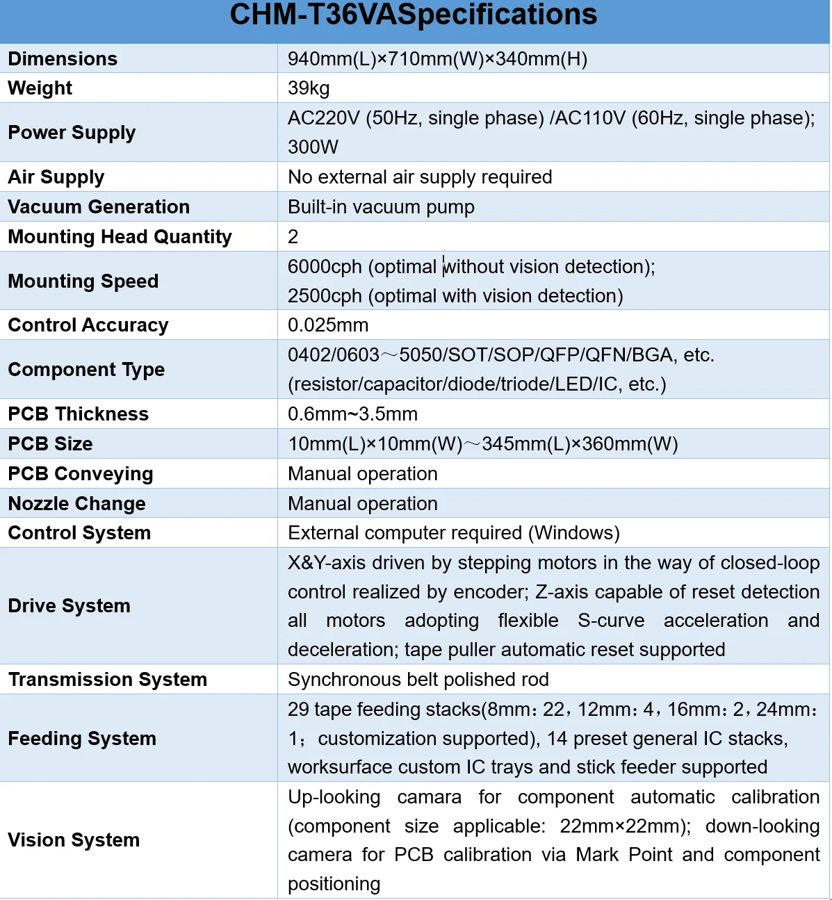 СПеремещение по оси Z обнаружения может самопроверкаВысота и угол во время размещения. Убедитесь, что эта машина хорошо работает с различными компонентами.