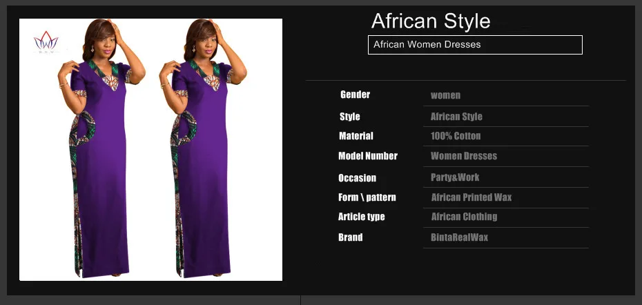 BRW африканская одежда для женщин с коротким рукавом Макси платья прямое платье с принтом Дашики африканская печать длинное платье WY1237