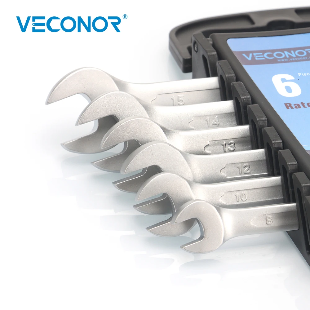 Veconor 6 штук Трещоточный комбинированный гаечный ключ набор ключ гаечный ключ 8-15 мм с пластиковой стойка для хранения инструментов качество хром ванадия