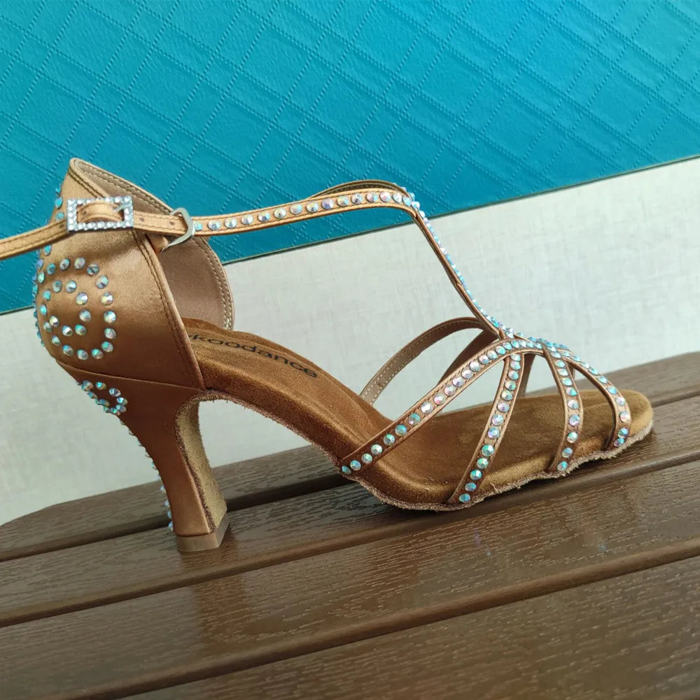 Женские туфли для латиноамериканских танцев, каблук 8 см, стразы для латиноамериканских танцев, NL023, 2017