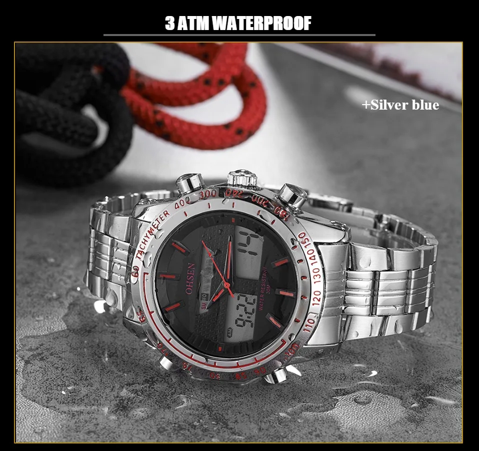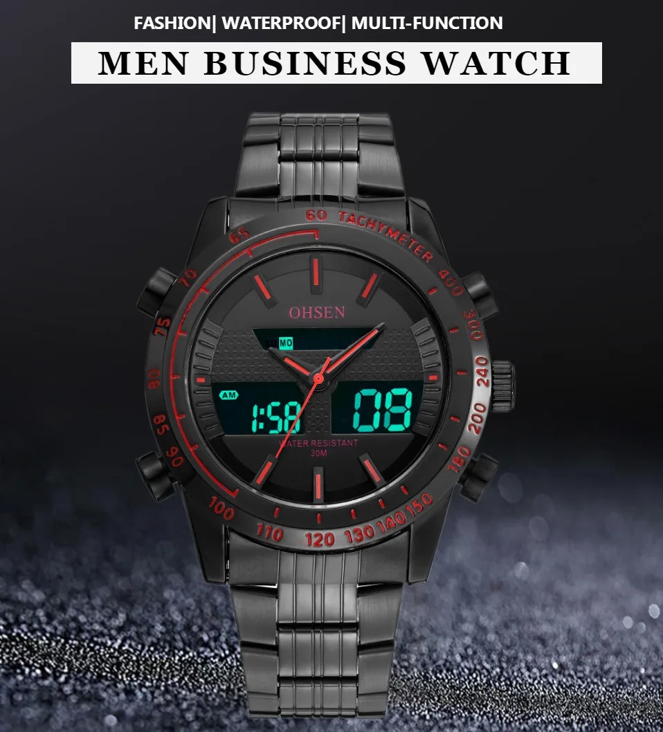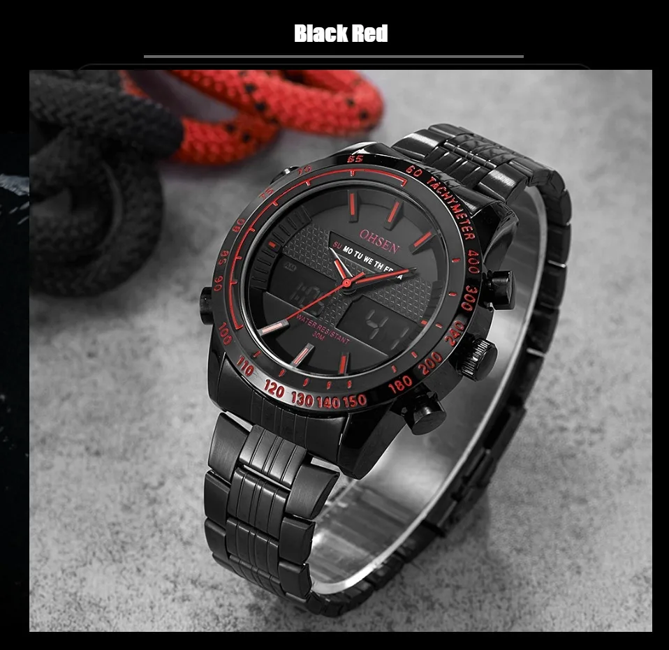 Прочные водонепроницаемые часы из сплава чехол Японская Кнопка Maxell, более длительный срок службы Ремешок для часов из нержавеющей стали Задняя крышка из нержавеющей стали с лазерным логотипом OHSEN