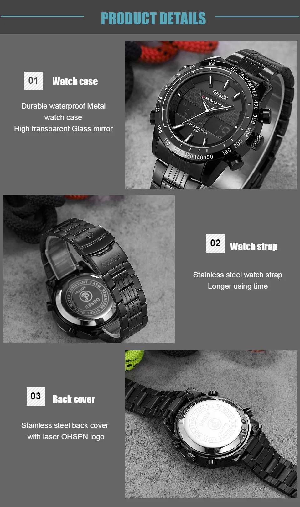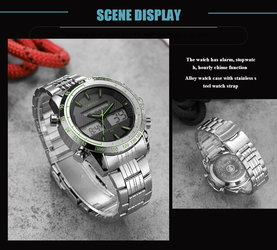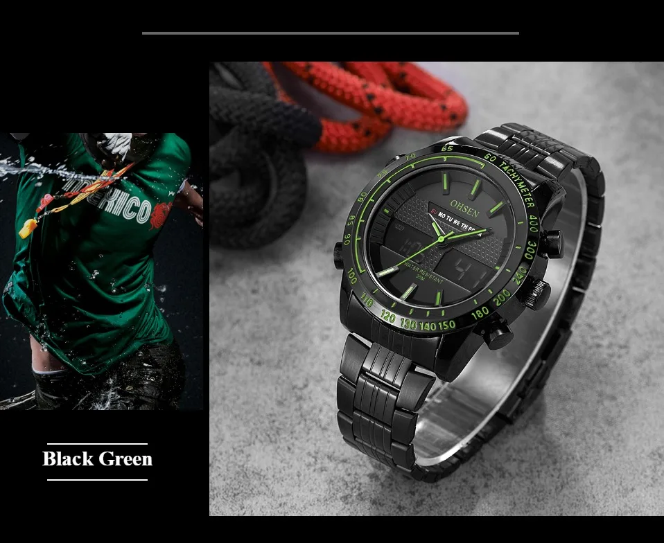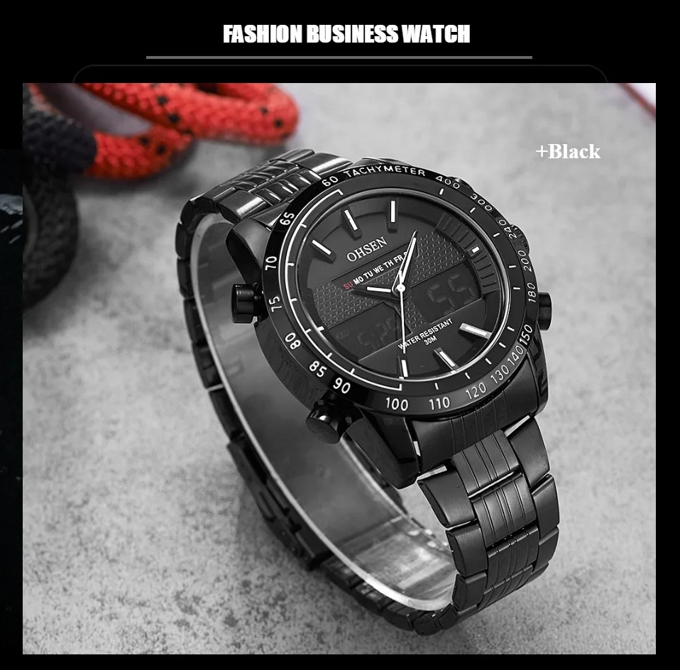 Прочные водонепроницаемые часы из сплава чехол Японская Кнопка Maxell, более длительный срок службы Ремешок для часов из нержавеющей стали Задняя крышка из нержавеющей стали с лазерным логотипом OHSEN