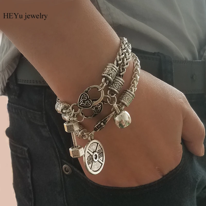 Браслеты с гантелями, ювелирные изделия для фитнеса, чайники, колокольчики, браслеты, можно дропшиппинг, спортивный зал, вдохновленный, для любителей фитнеса, подарок