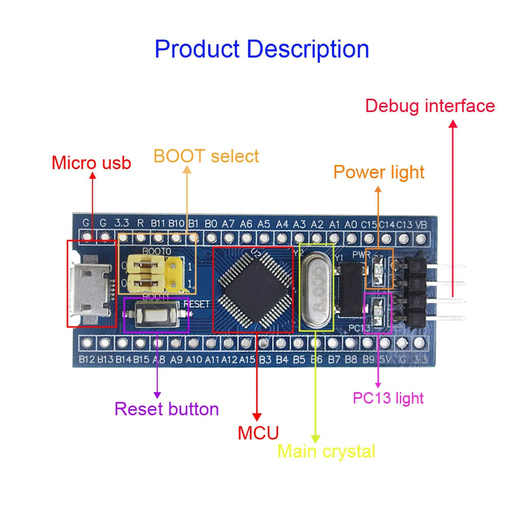4. Интерфейс MCU pin: ведет все контакты ввода/вывода, легко подключается к периферийным устройствам.