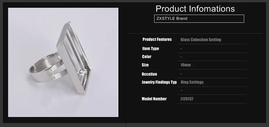 Регулируемое кольцо с родиевым покрытием 25 мм квадратная рамка Камея стекло кабошон базовые заготовки для оптовой продажи 10 шт