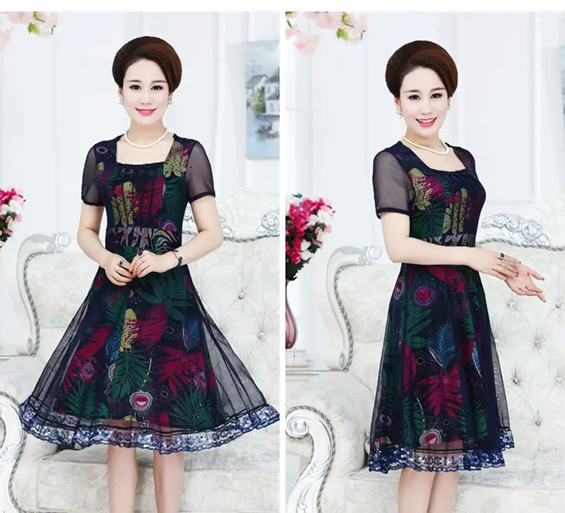 Женское летнее платье размера плюс XL-6XL, хит продаж, Элегантное повседневное шифоновое мини-платье трапециевидной формы с коротким рукавом и принтом